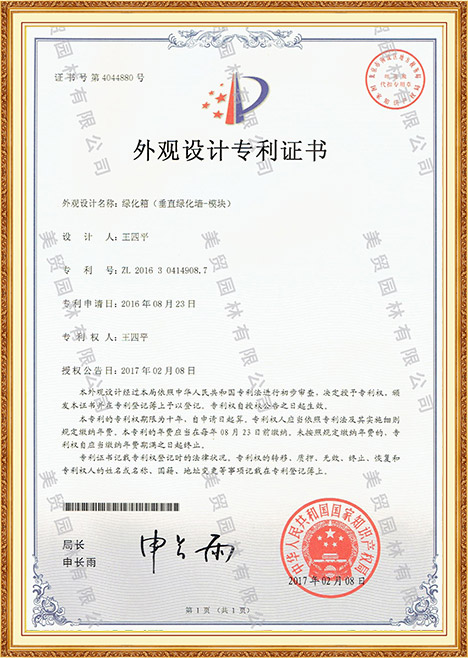 2026世界杯官网有限公司荣获多项专利及证书,包括外观设计,园林设计,产品设计等,产品经过国家质监局检测合格发放质检合格证书。
